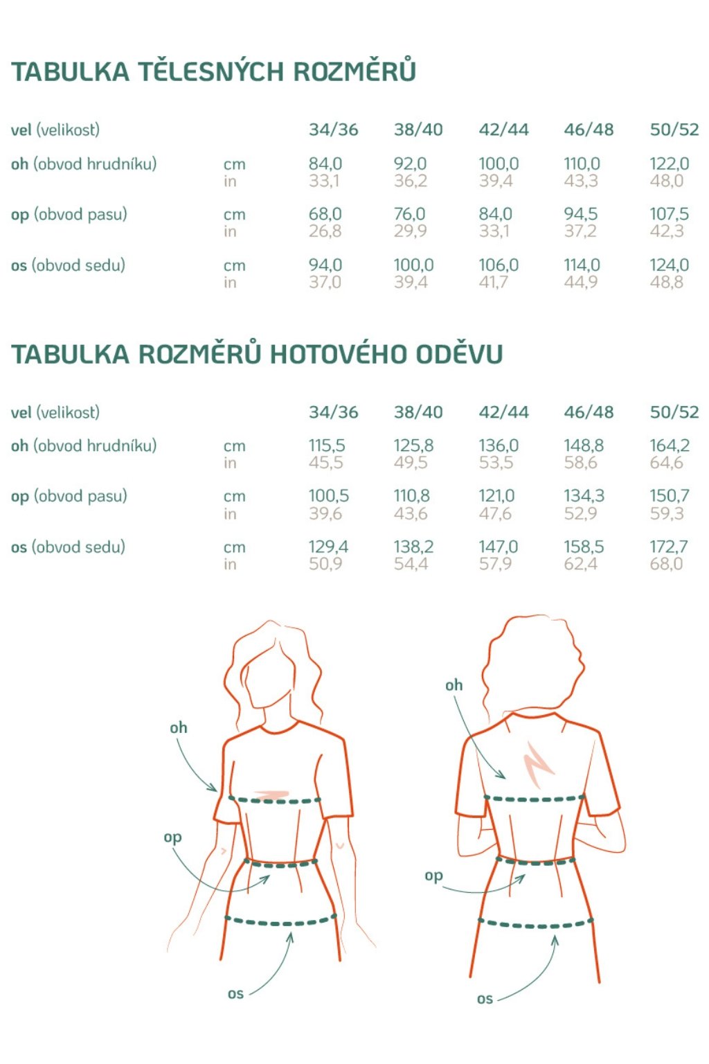 | Střih obsahuje dle zvolené varianty: | velikost 34-56 |