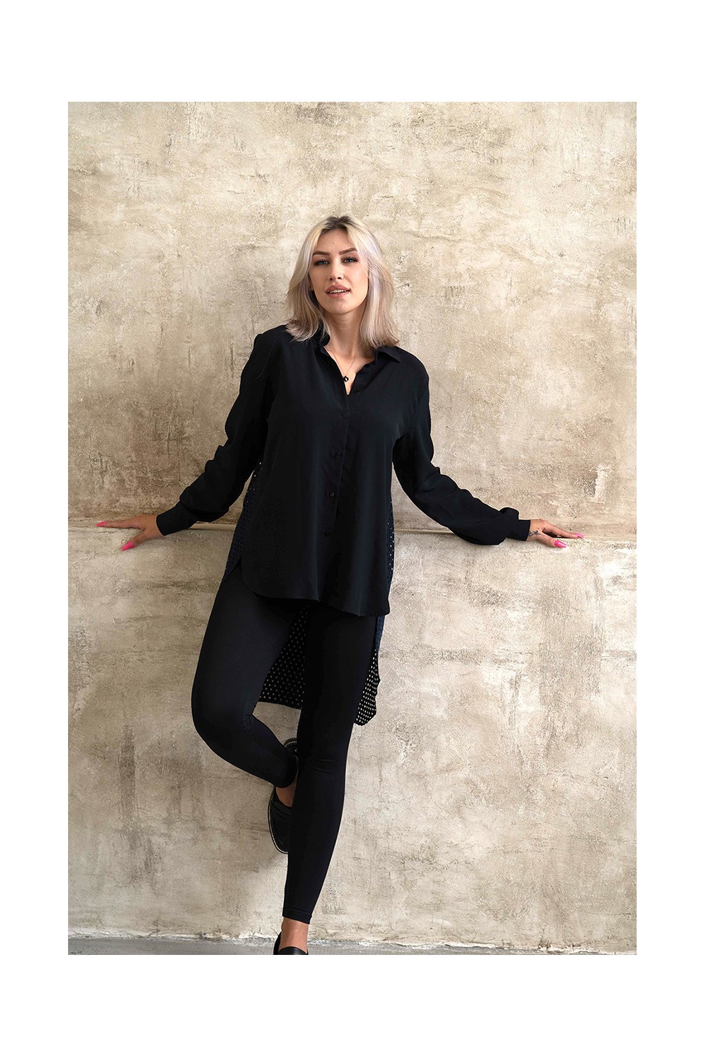 Jako bohyně! Košile je ušitá tak, abyste se v ní cítili pohodlně a svobodně, nikde netahá ani neškrtí a má extra dlouhé rukávy. Daly jsme si práci s francouzskými švy, protože krása není důležitá jen z venku, ale i zevnitř.