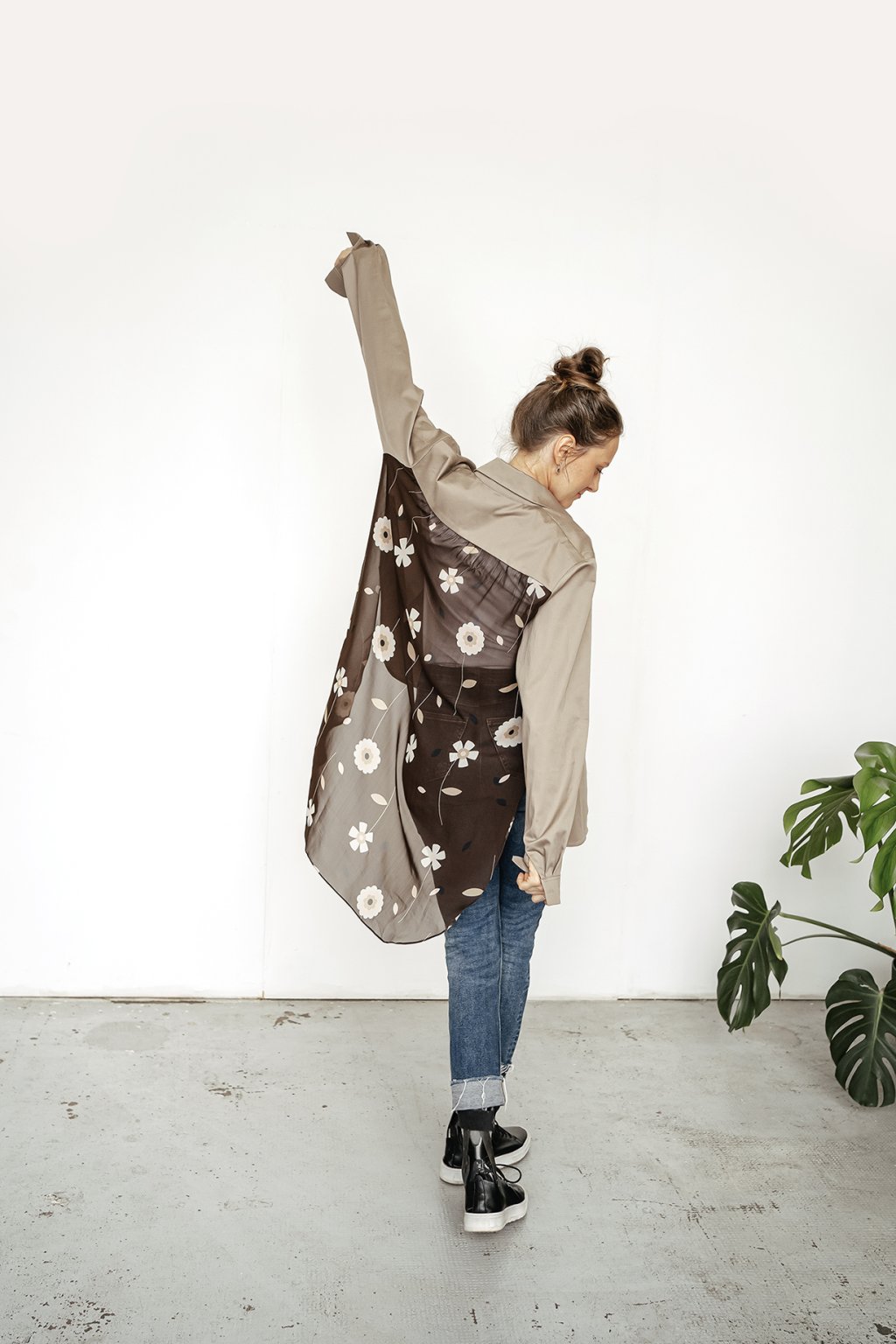 Košile byla ušitá v pražské šicí dílně Stehovka. Udělaly jsme pro vás jen pár kousků z italského deadstocku, takže v ní jen tak někoho nepotkáte a došití není možné, spotřebovaly jsme každý centimetr látky.