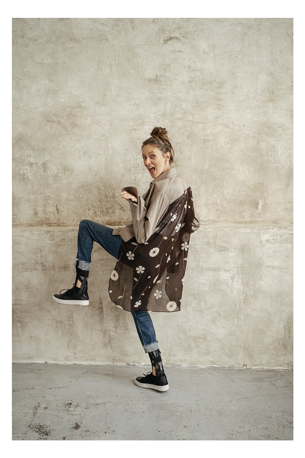 Jako bohyně! Košile je ušitá tak, abyste se v ní cítili pohodlně a svobodně, nikde netahá ani neškrtí a má extra dlouhé rukávy. Daly jsme si práci s francouzskými švy, protože krása není důležitá jen z venku, ale i zevnitř.