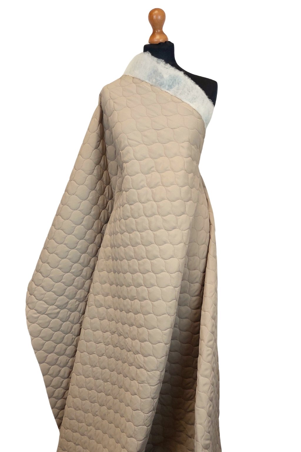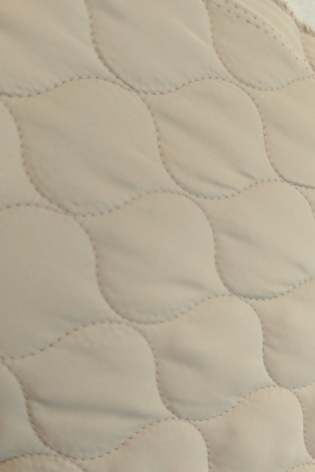Působí načechraně, ale kompaktně, je velmi lehká a měkká. Na omak připomíná jemnou bundovou látku s měkkou výplní uvnitř, která je příjemná na nošení a zároveň drží tvar. Prošev obvykle nepotřebuje podšívku, protože ji už má všitou – šetří tak čas i práci.