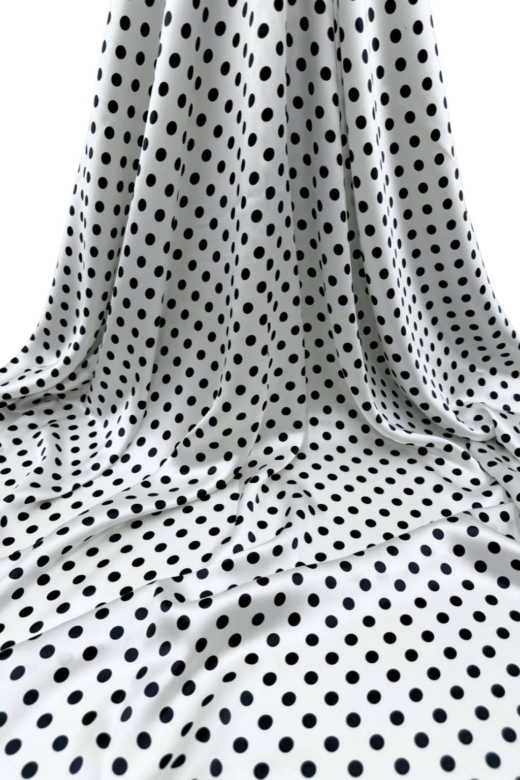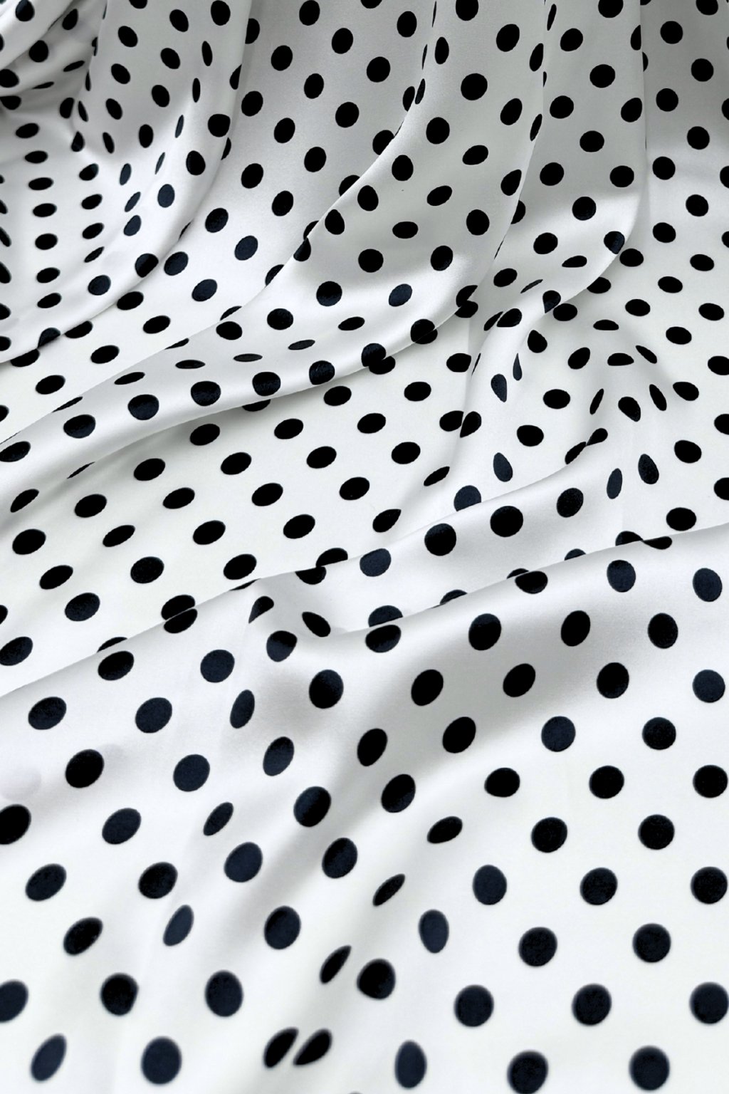 Saténové hedvábí metráž | pravé hedvábí | MEGAN | ČERNÉ PUNTÍKY
