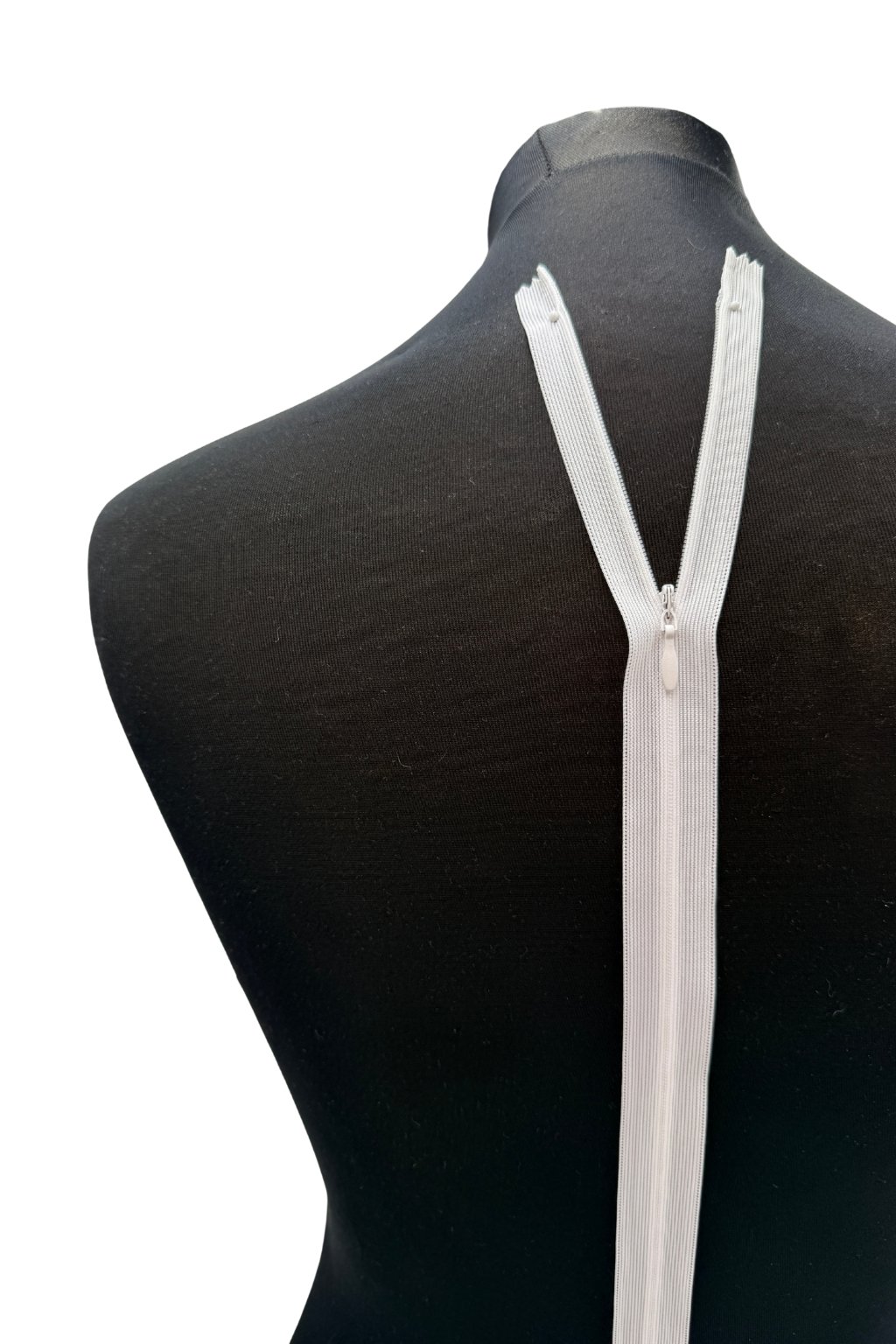 Zip se hodí pro společenské šaty, sukně, halenky, svatební šaty, ale i pro lehké topy a jemné tkaniny, kde je kladen důraz na nenápadný detail. Je vhodný pro většinu lehkých až středně silných materiálů.
