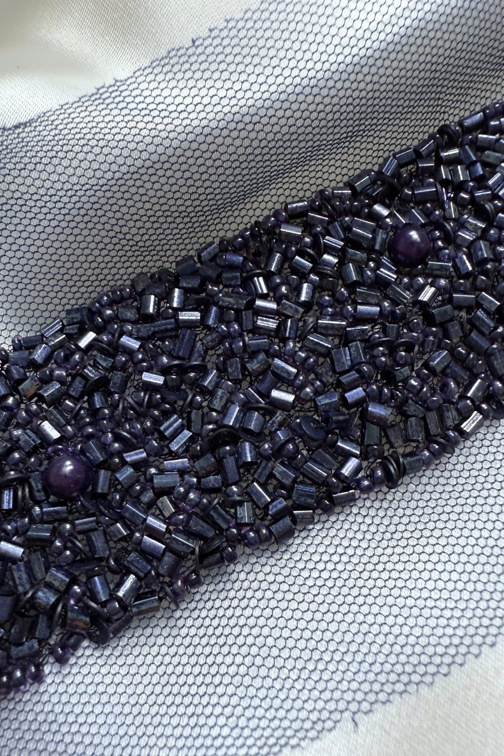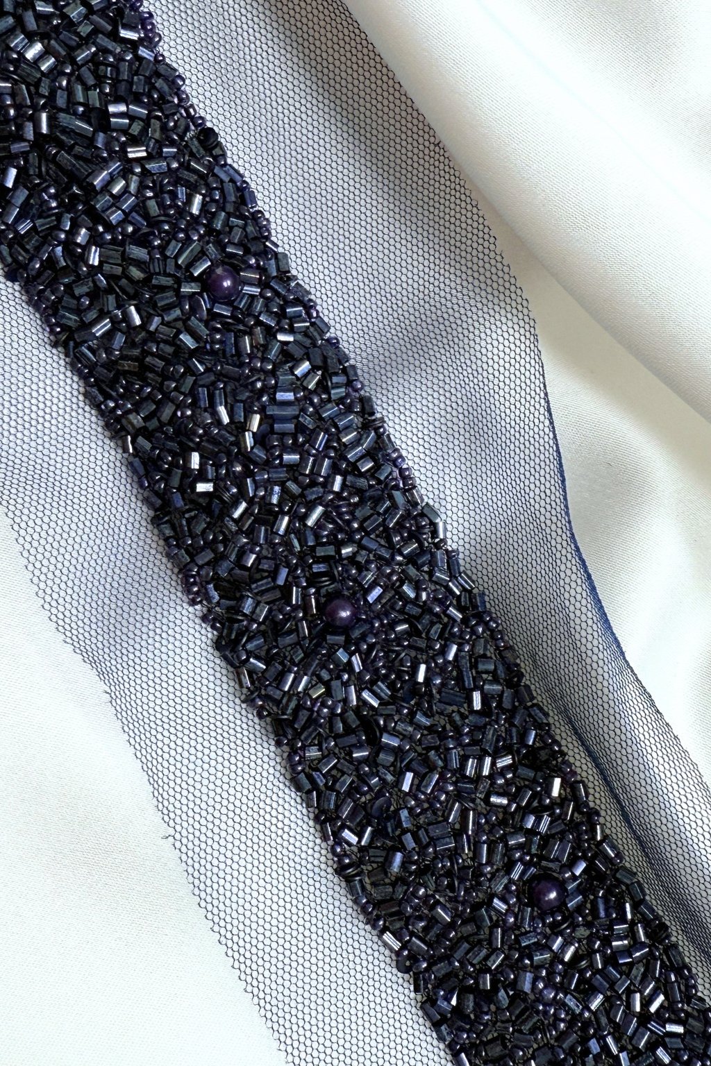 Tato výjimečně zdobená borta dodá vašim šatům nádech elegance a luxusu. Bohatě vyšívaný pruh s perličkami, korálky a kamínky je ideální k dozdobení živůtku, pasu, rukávů, vlečky nebo závoje.