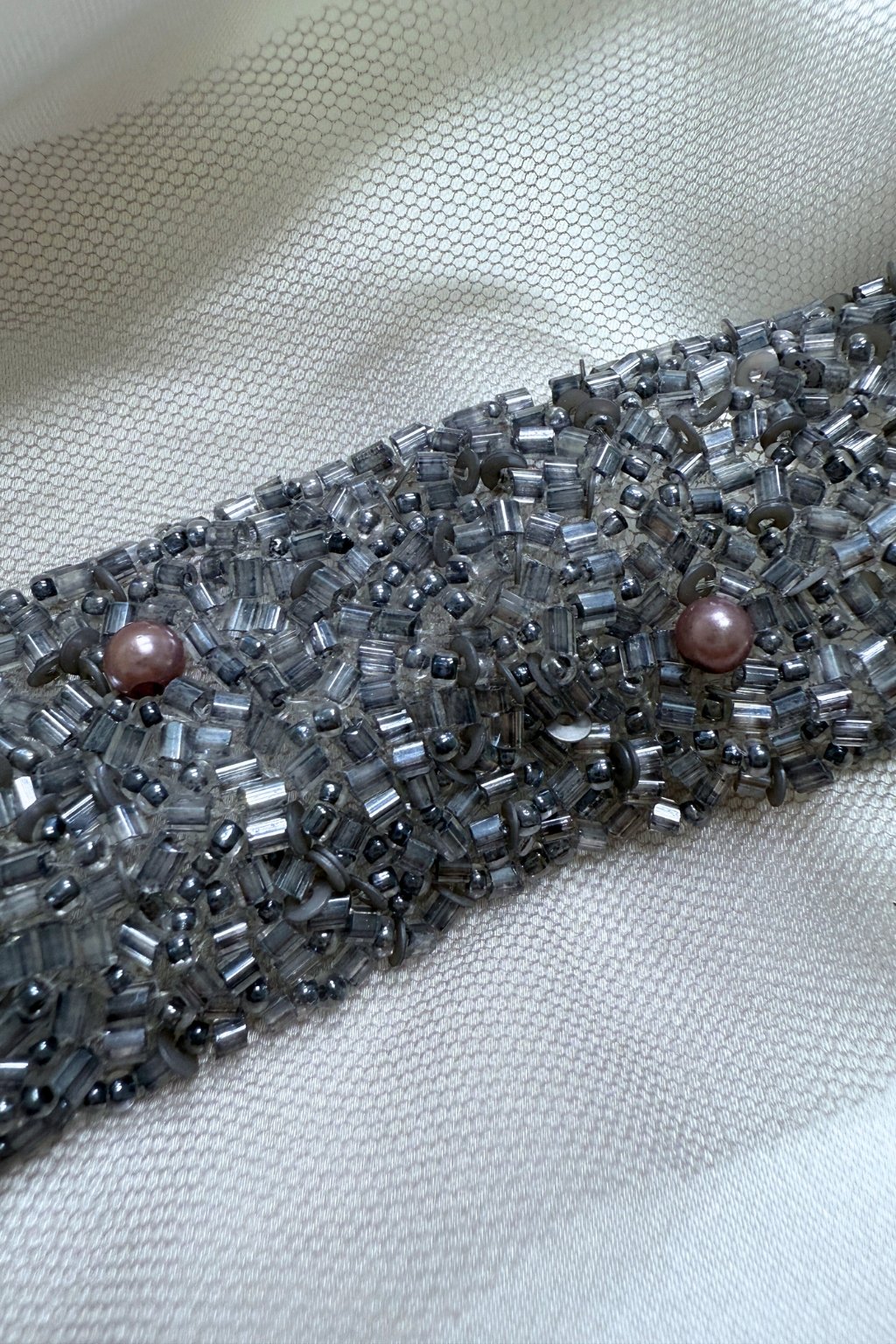 Ozdobná borta metráž | korálková | KRYSTAL | ŠEDÁ