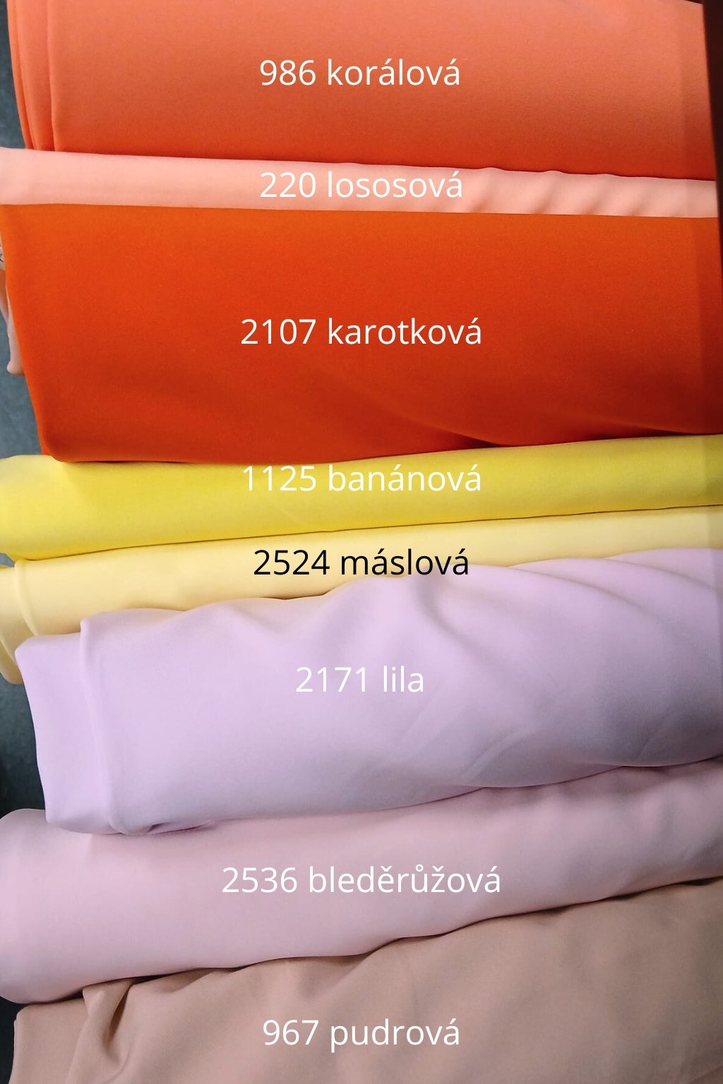 Barevnost látek se může lišit od reality, nejčastěji je to způsobené různým nastavením zobrazení barev na vašem počítači nebo telefonu, pokud si potřebujete barevnost látky ověřit, kontaktujte nás přes Whatsapp, nebo si objednejte vzorek látky.