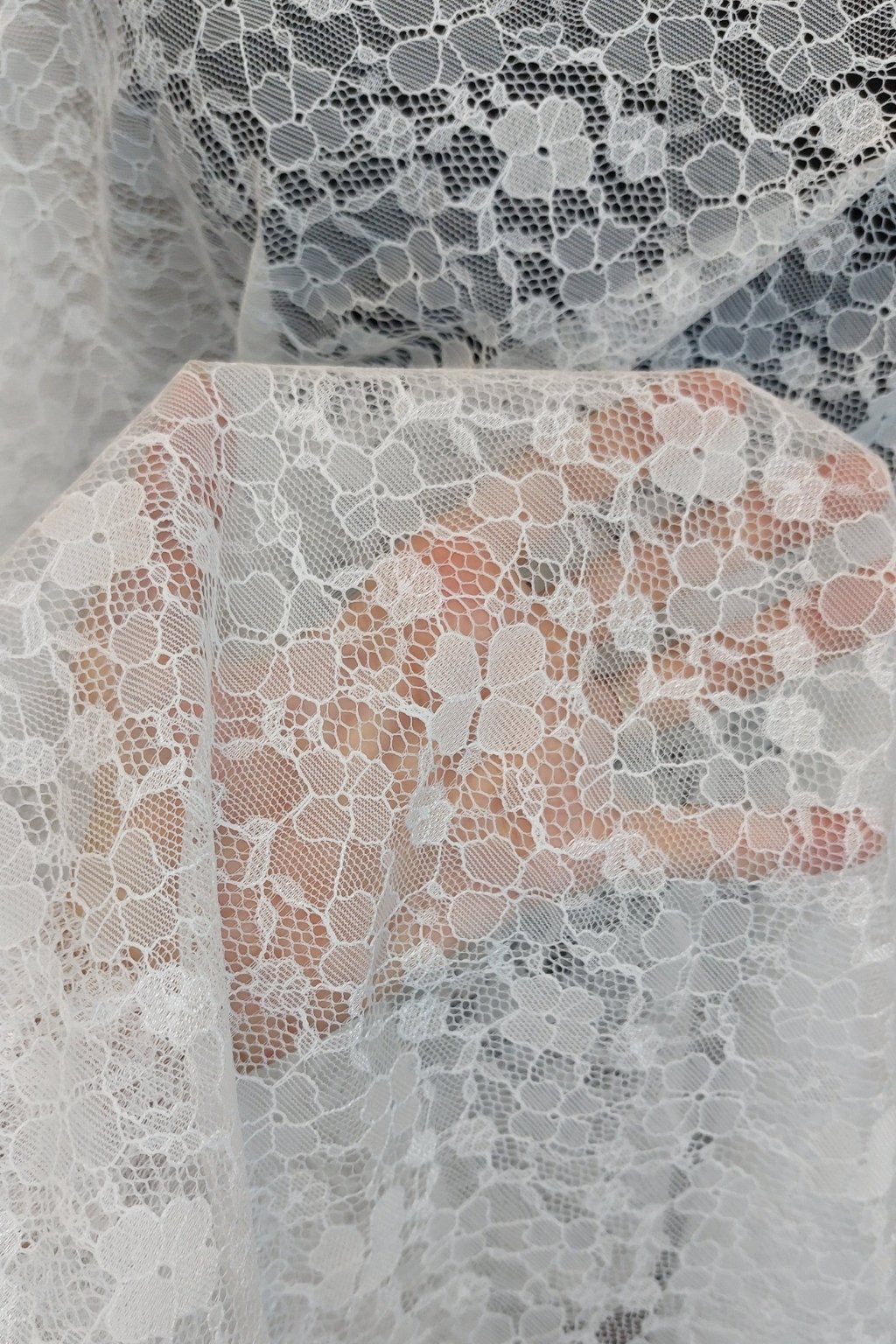 Na dotek je francouzská krajka lehoučká, splývavá a velmi příjemná, s nádherně zřetelnou kresbou. Může být jemně pružná, doplněná o vyšívané detaily, perličky, korálky nebo jemný lesk. Vždy působí výjimečně – ať už tvoří celé šaty, nebo jen decentní detail.