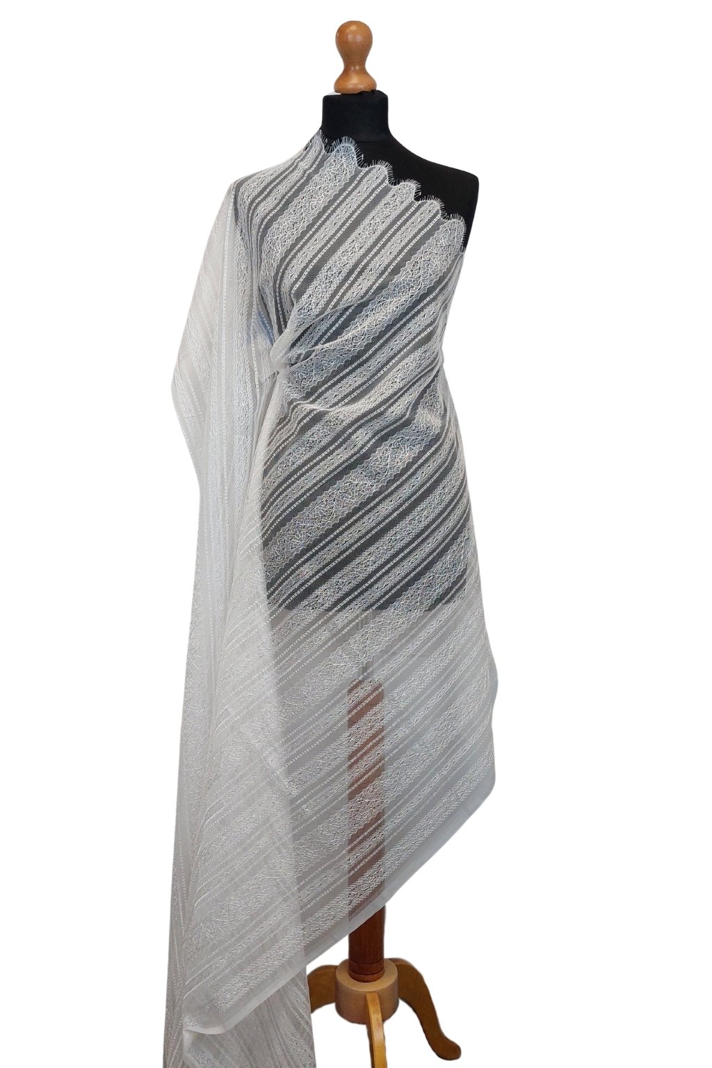 Z francouzské krajky lze vytvořit okouzlující svatební živůtek, jemné rukávy, krajkový závoj, vrstvenou sukni nebo slavnostní halenku. Skvěle se kombinuje s hedvábím, saténem nebo jemným šifonem. Je to látka, která i z nejjednoduššího střihu udělá couture kousek.