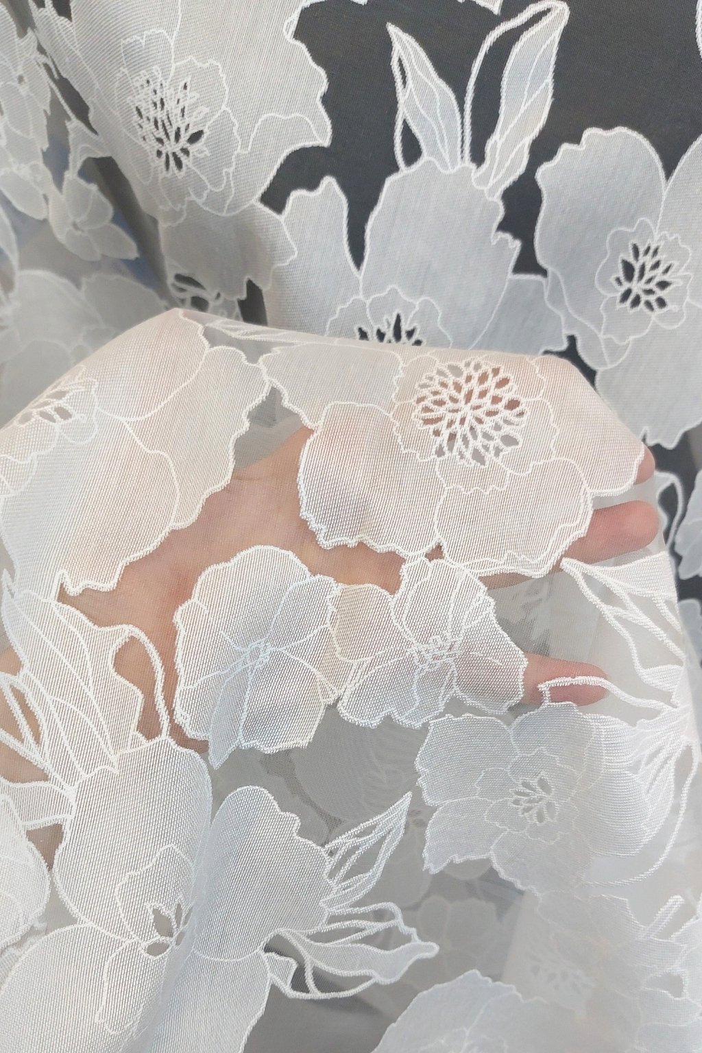 Organza je dostupná v optické bílé a ivory, lze ji kombinovat se všemi svatebními látkami z naší nabídky. Materiál je možné doobjednat. Pokud sníte o šatech s nádherným objemem a lehkou vzdušností, hedvábná organza je přesně tím, co hledáte.