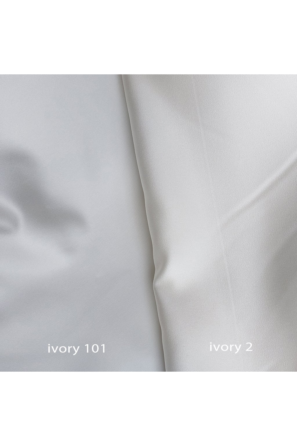 Satén je dostupný v optické bílé a několika odstínech ivory, dokonale ladí se všemi svatebními látkami z naší nabídky. Materiál je možné doobjednat. Ať už se rozhodnete pro jakýkoliv střih, tento satén mu dodá nádherný tvar a neopakovatelnou eleganci.