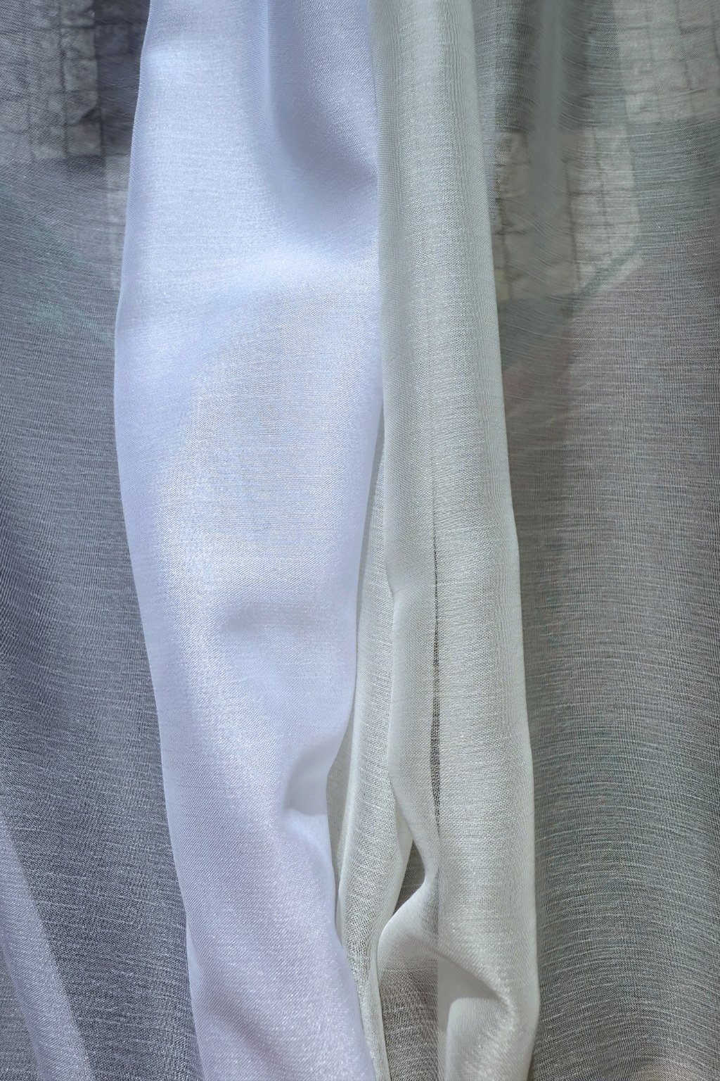 Je dostupný v optické bílé a ivory, lze jej kombinovat se všemi svatebními látkami z naší nabídky. Materiál je možné doobjednat. Pokud chcete látku, která dodá vašim šatům vzdušnost, eleganci a lehký lesk, šifon lampo je jasná volba pro šití svatebních šatů.