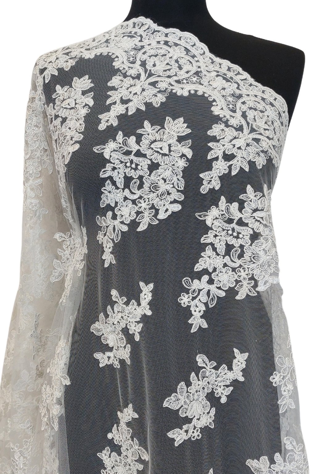 Svatební vyšívaný tyl se sutaškou metráž | KRISTA | IVORY