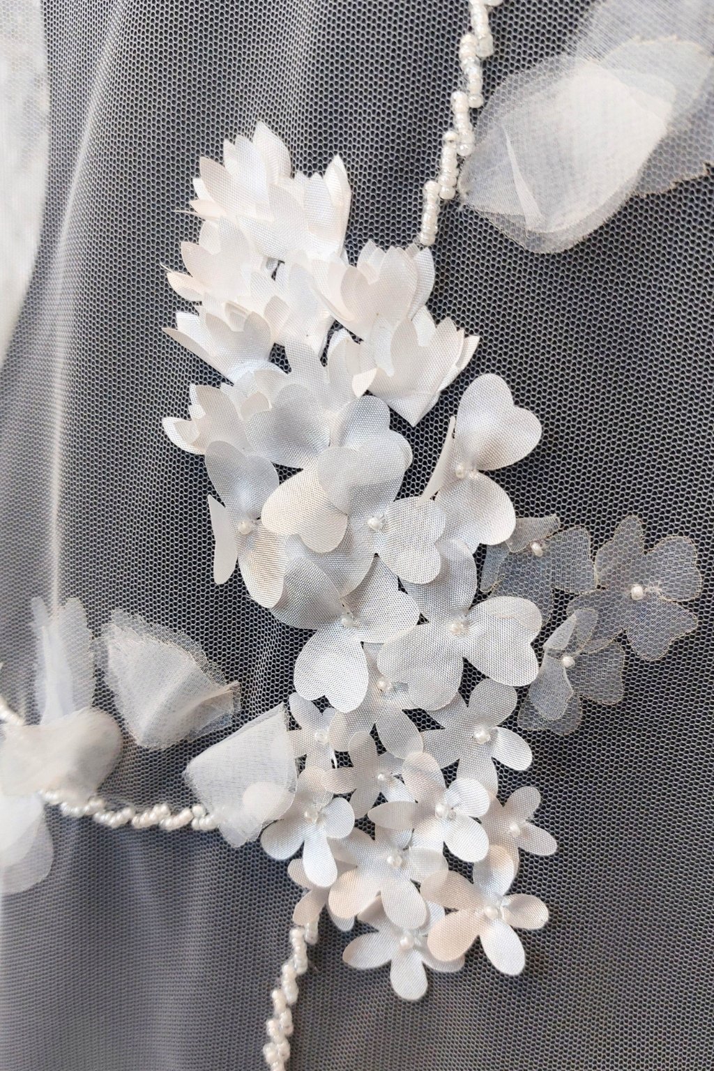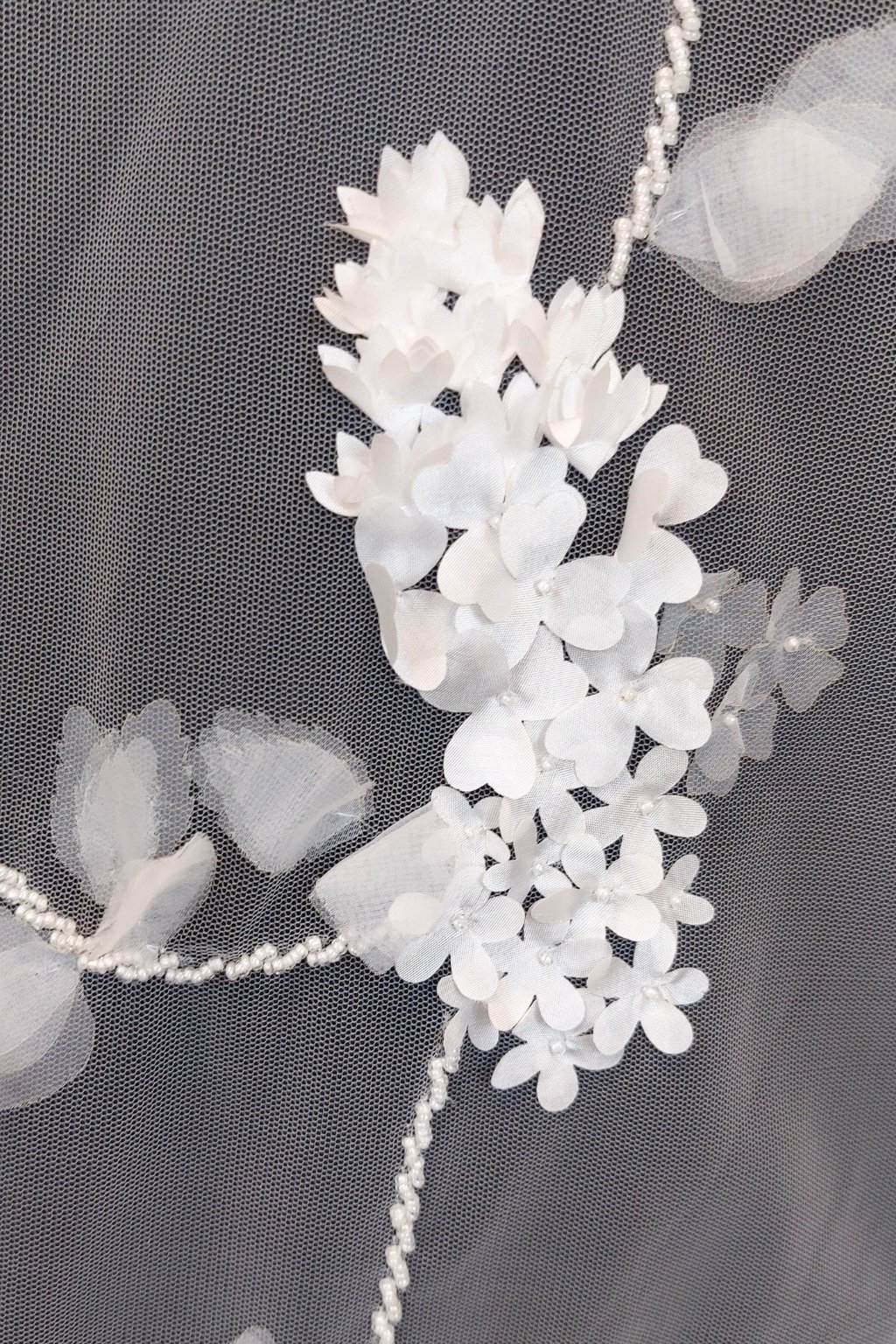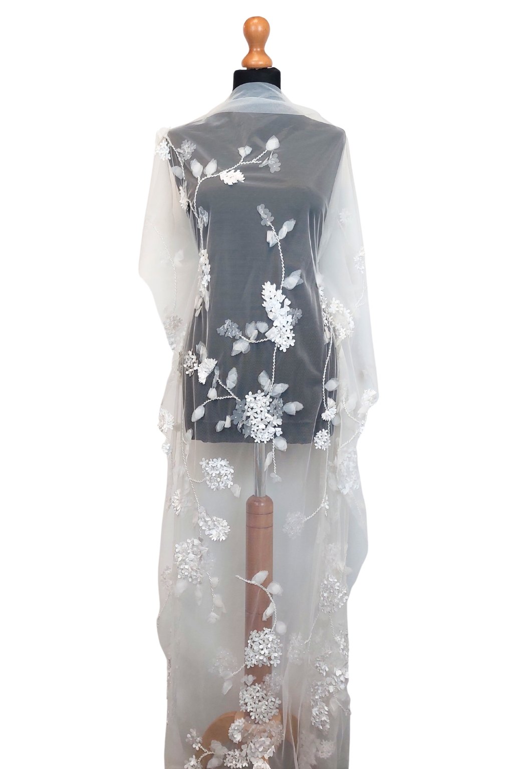 Svatební vyšívaný tyl zdobený metráž | LEA | IVORY
