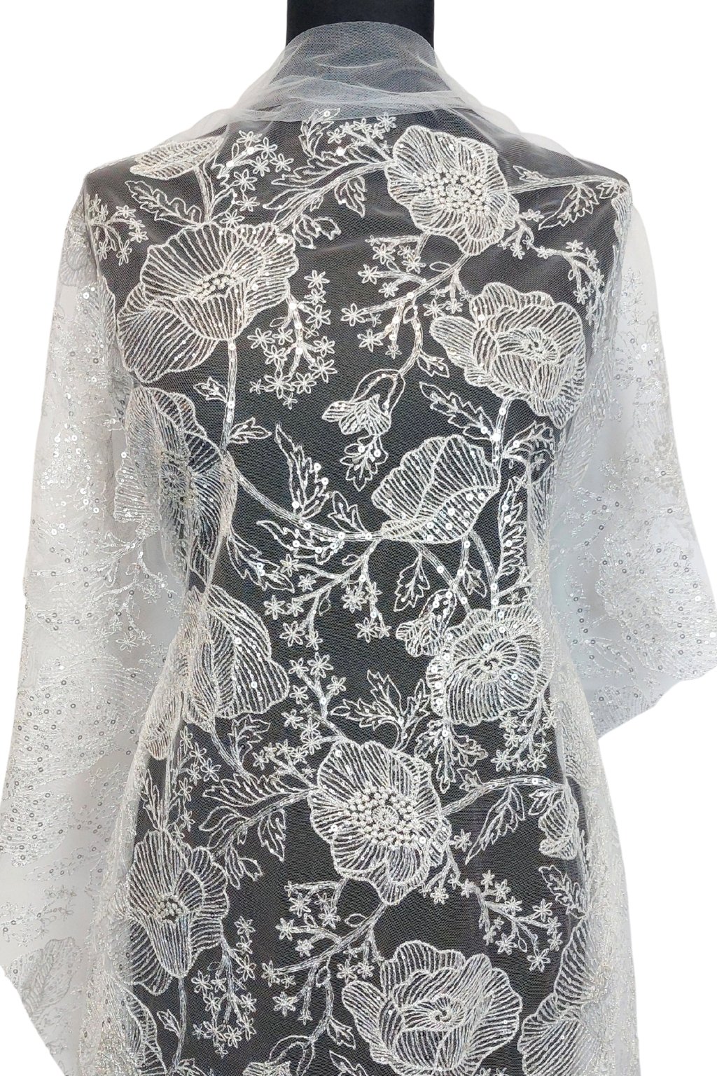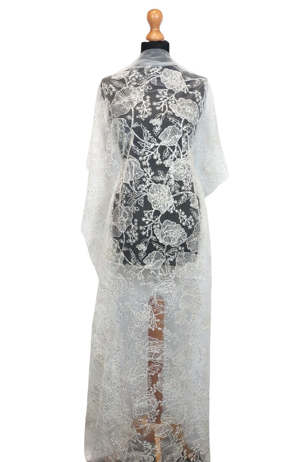 Svatební vyšívaný tyl zdobený metráž | POPPY | IVORY