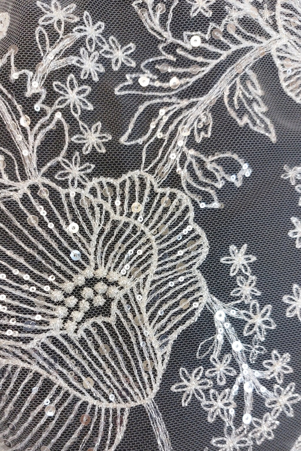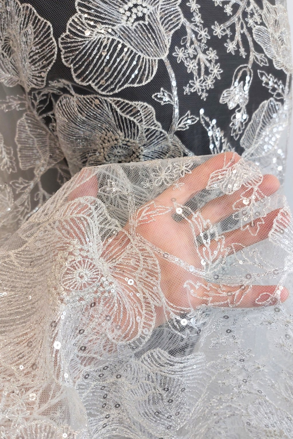 Na dotek je jemný, ale bohatě strukturovaný díky pečlivě aplikovaným ozdobám. Přináší luxusní efekt, který dělá z každého modelu mistrovské dílo. Perfektní na gala večery, svatby nebo módní přehlídky.