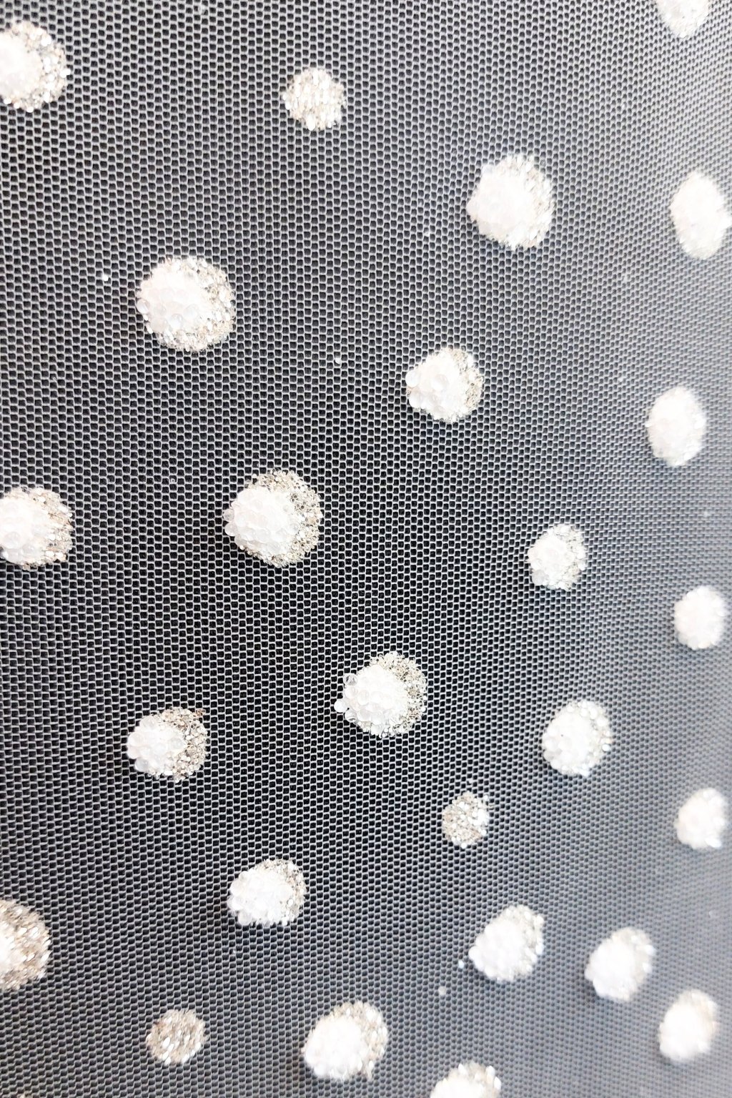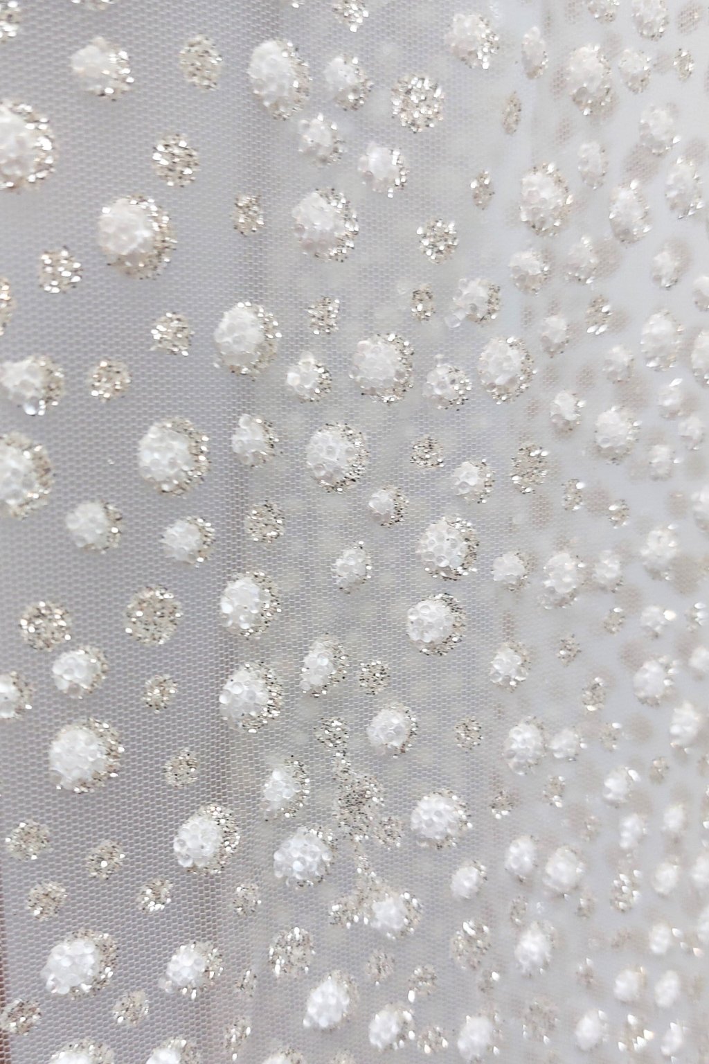Svatební vyšívaný tyl zdobený metráž | SNOW | IVORY