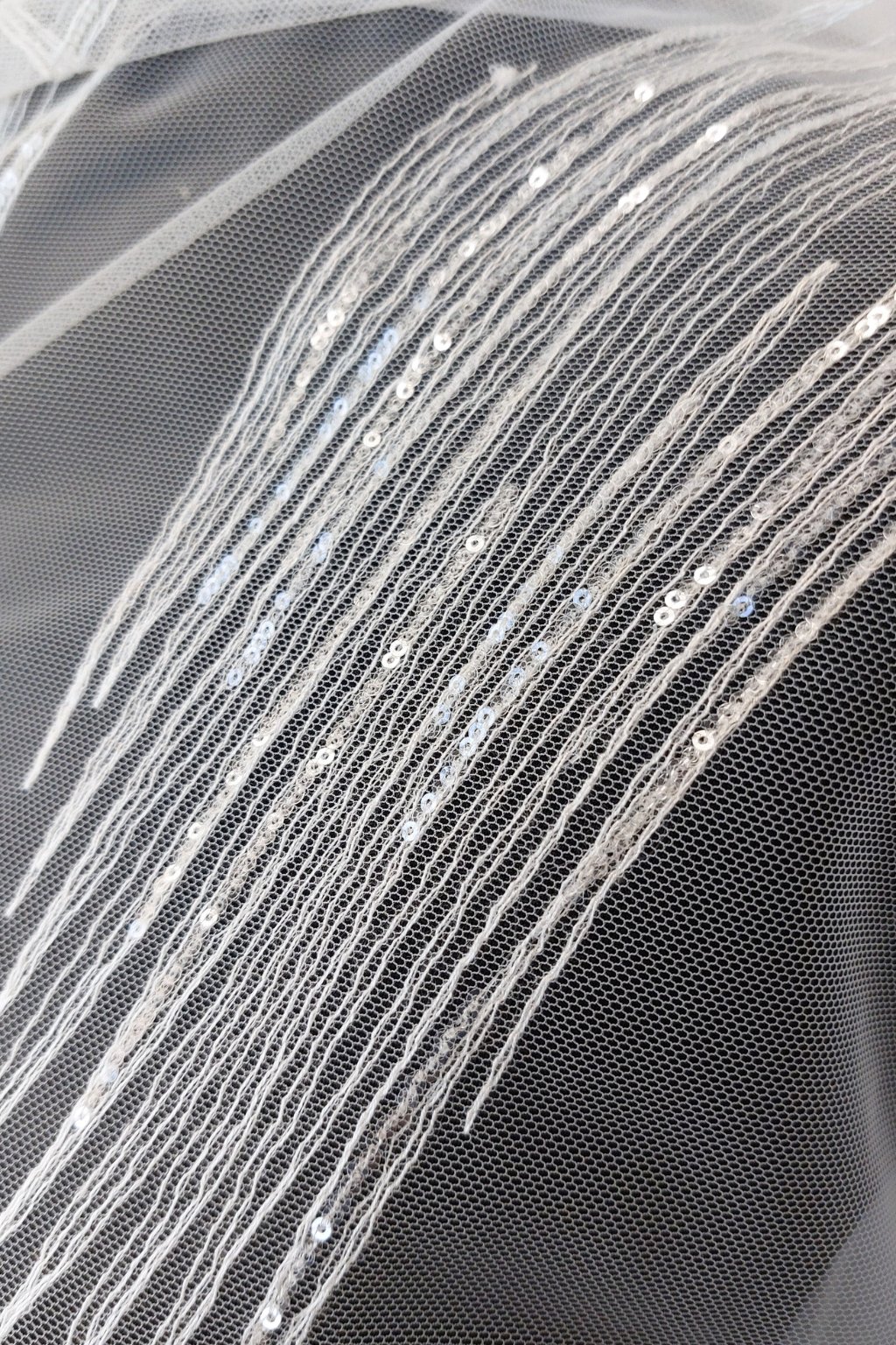 Svatební vyšívaný tyl zdobený metráž | WIND | IVORY