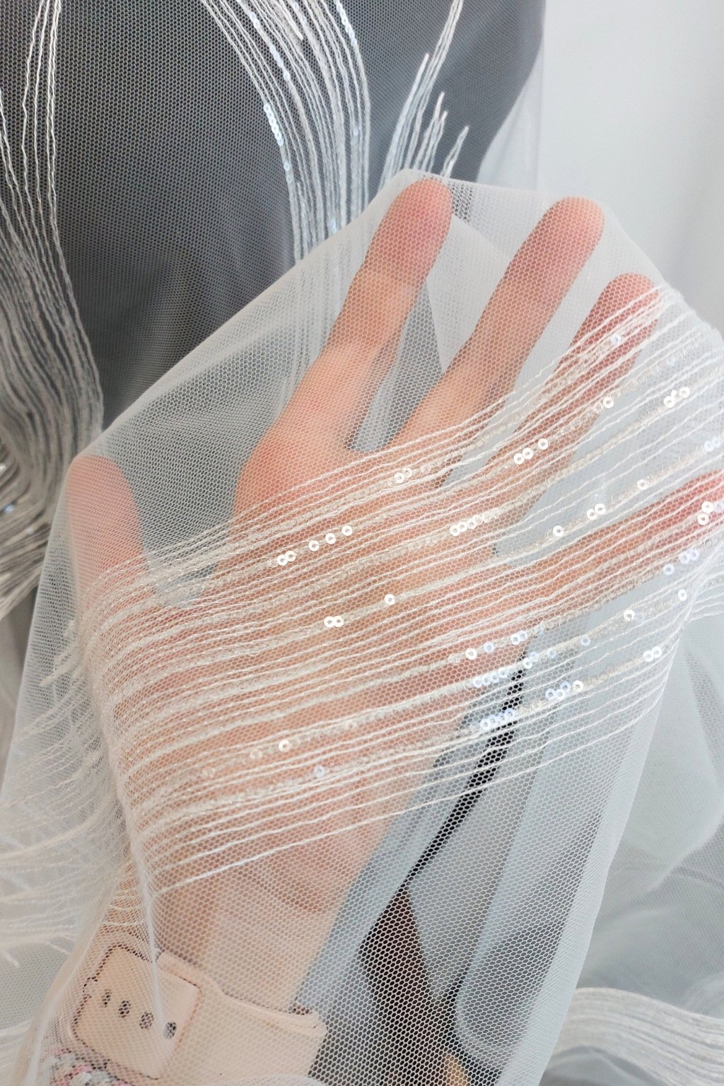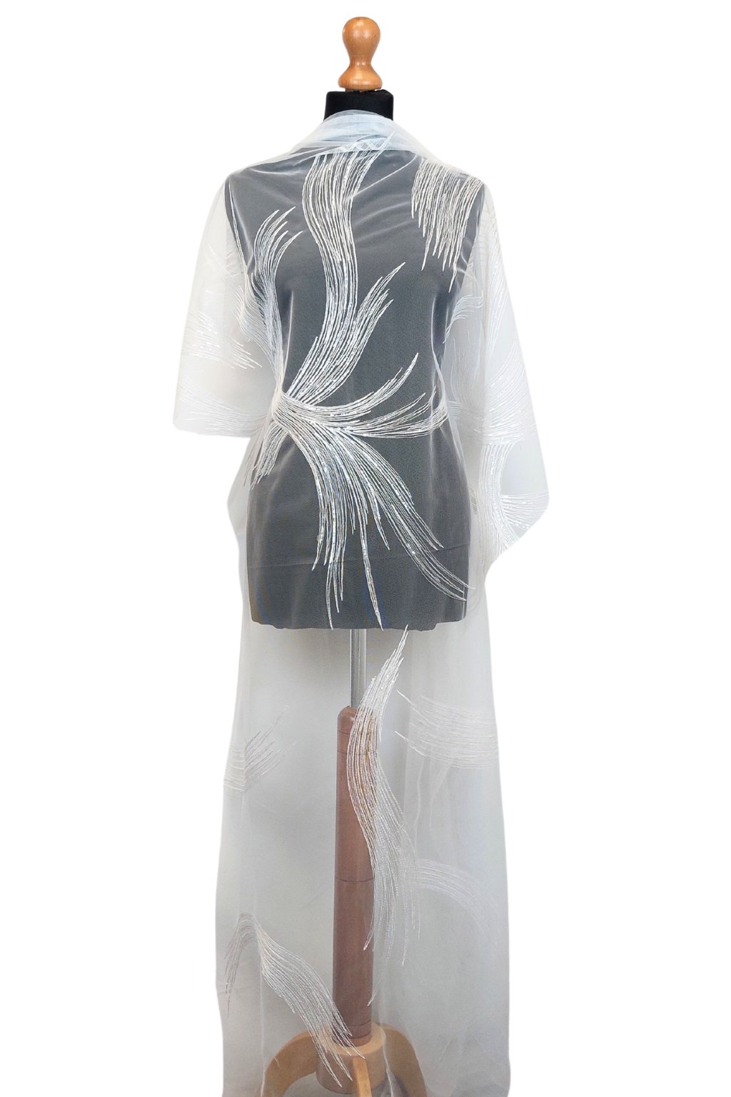 Na dotek je jemný, ale bohatě strukturovaný díky pečlivě aplikovaným ozdobám. Přináší luxusní efekt, který dělá z každého modelu mistrovské dílo. Perfektní na gala večery, svatby nebo módní přehlídky.